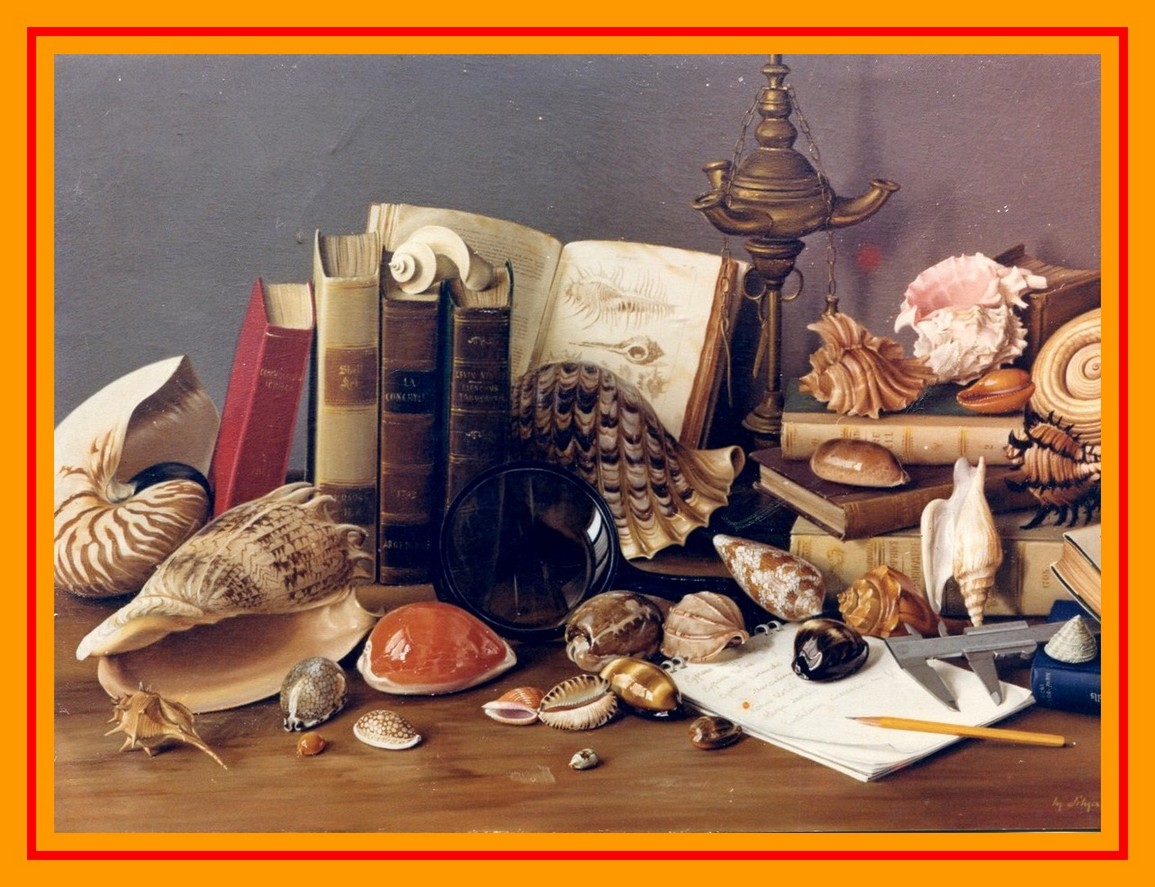 Veramente bella tela; interessante il calibro che spunta tra le conchiglie