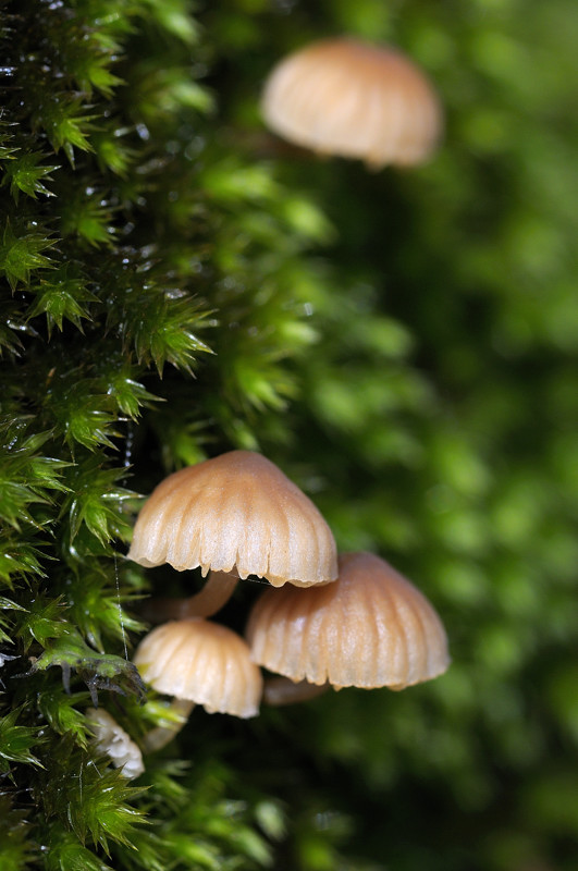 In effetti sono buone entrambe le ipotesi....io però preferirei Mycena...forse (visto l'habitat su corteccia muschiosa di quercia vivente. Le tonalità erano rosate o dominavano i colori giallastri?