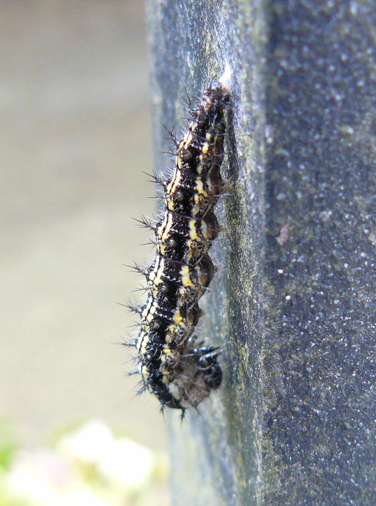 Ciao, mi sembra un bruco del Nymphalidae Aglais urticae pronto pronto a diventare crisalide. Conferme?