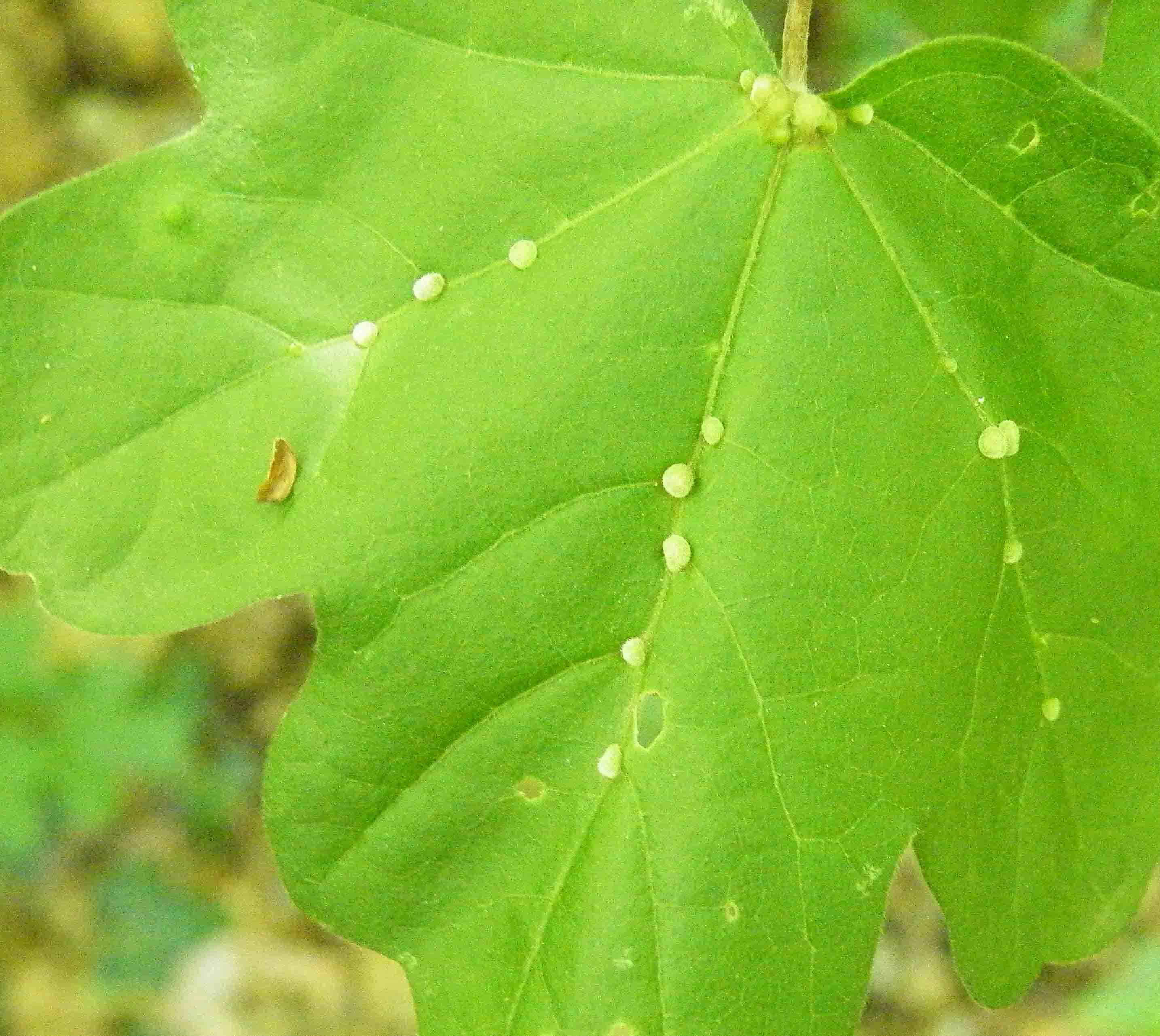 In un bosco nei dintorni di Imola ho fotografato questi rigonfiamenti per la maggior parte concentrati lungo le venature delle foglie di acero campestre.