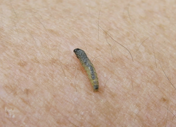 Alla ricerca di orchidee camminando nella macchia con prevalenza di Biancospino è approdato questo piccolissimo bruco sul mio braccio...