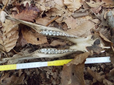 Allora... Dato che il terzo molare è già del tutto fuori l'esemplare ha sicuramente più di due anni. Io starei comunque sotto i 4 anni, diciamo intorno ai 31-35 mesi, in quanto il terzo molare è poco usurato, il primo molare è usurato ma non poi così tanto e anche i premolari sono poco usurati. Utilizzando il metodo illustrato da Payne in "Ageing and sexing animal bones from archaeological sites", la mandibola appartiene a un individuo di 38 mesi.
