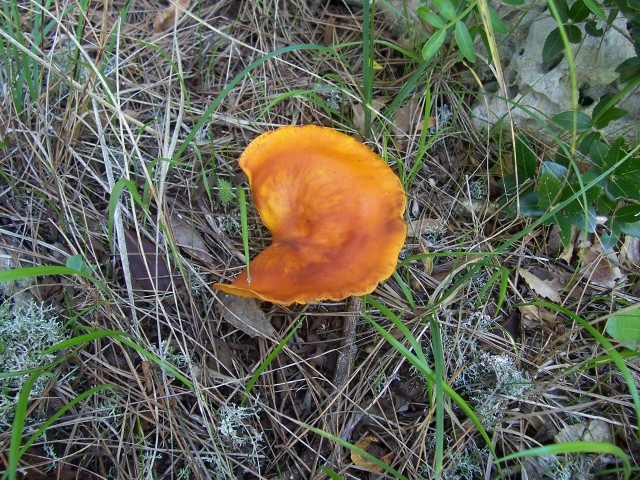 credo Onphalotus olearius anche se di solito a crescita cespitoso, vista la presenza di numerose lamellule (foto 2) e il colore non molto carico non dovrebbe essere Hygrophopsis aurantiaca.