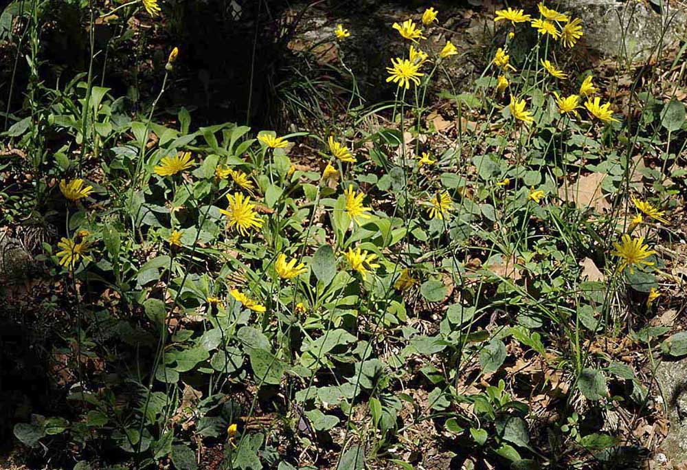 Con quelle foglie macchiate potrebbe essere Hieracium bifidum, amche se mi sembra ad un'altitudine un pò bassa ...ma è un genere per specialisti....