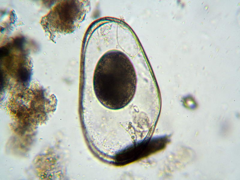 Mmmmmmm! Exuvia di Ostracode con dentro qualcosa, forse qualcosa d'incistato.