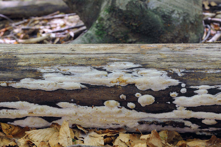 Anche questa è Antrodia pulvinascens, stessa consistenza dei pori che si sgretolano alla pressione o allo sfregamento e stessa microscopia.
