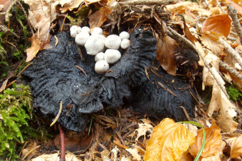 ... Asterophora lycoperdoides ... su Russula nigricans ...