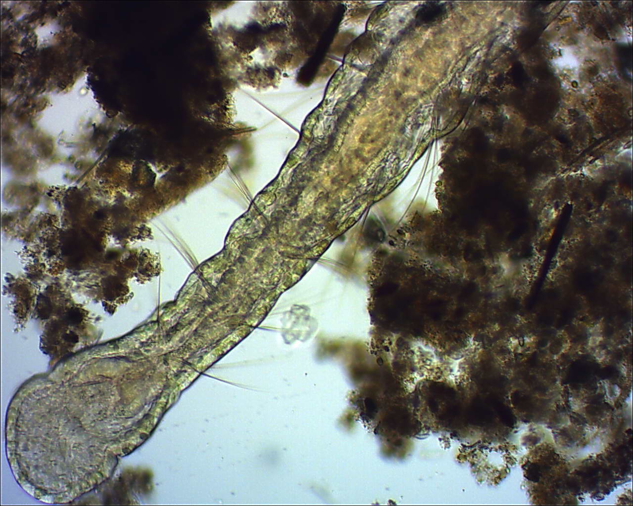 finora i tentativi di catturare qualche idra sono andati vani, anche aiutandomi con una siringa. In compenso ho aspirato un pò del materiale sulla foglia di Anubias e questo è il risultato: