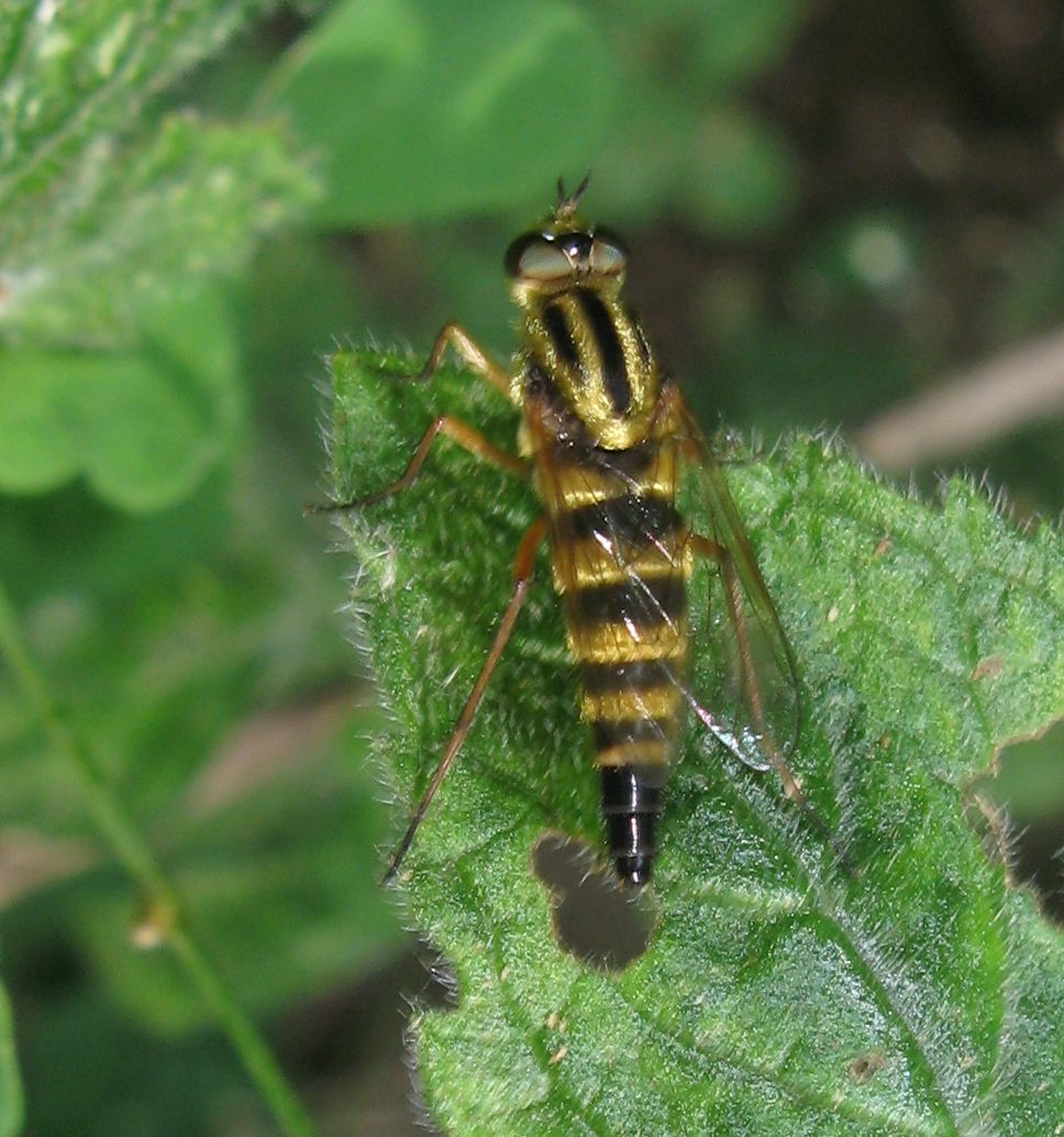 Dovrebbe trattarsi di Thereva aurata Loew, 1854, Therevidae.