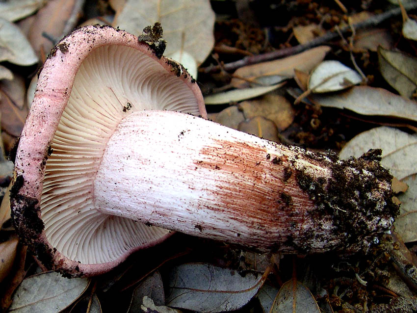 nel gruppo non si vede, ma nella foro con i due esemplari girati, quello di destra ha effettivamente lamelle molto pallide.....