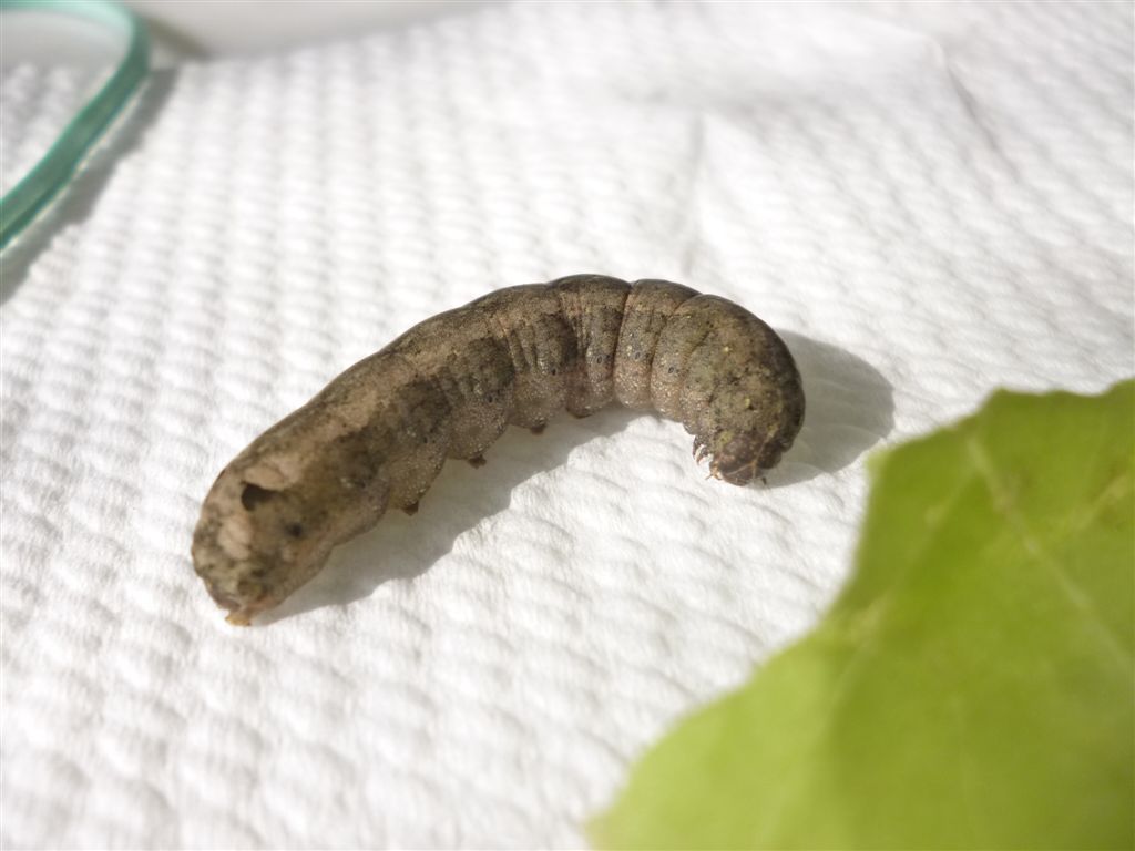Lago D'Averno(NA), 21 ottobre. Lungo il percorso, in prossimità delle canne(solo per caso immagino), ho trovato questo bruco. Era molto affamato, una volta a casa ha fatto fuori enormi quantità di insalata!E'aumentato velocemente di dimensioni(ed era già cicciottello quando l'ho trovato!), e dopo pochi giorni si è impupato. E' possibile identificarlo??Grazie