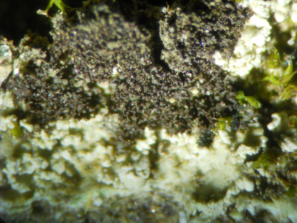 Restiamo circospetti con queste lichene. Ecco le mie ipotesi che metto alla prova. Le escrescenze nere che si indovina sulla foto potrebbero essere i conodiofore delle pycnidi ciò che farebbe pensare a Reichlingua leopoldii Si potrebbe immaginare anche un giovane Cystocoleus ebeneus ma questa specie silicicosa cresce piuttosto vicino ai fiumi. O ancora a Micarea botryoides ma quando si trova su rocce le sue picnidi sono immerse mentre qui non e il caso... Polychidium muscicole giovane senza apoteci sarebbe anche un altre ipotsi...Spaciente, queste foto non mi permettono di dire ne più se non che ho une preferanza per Reichlingua leopoldii.