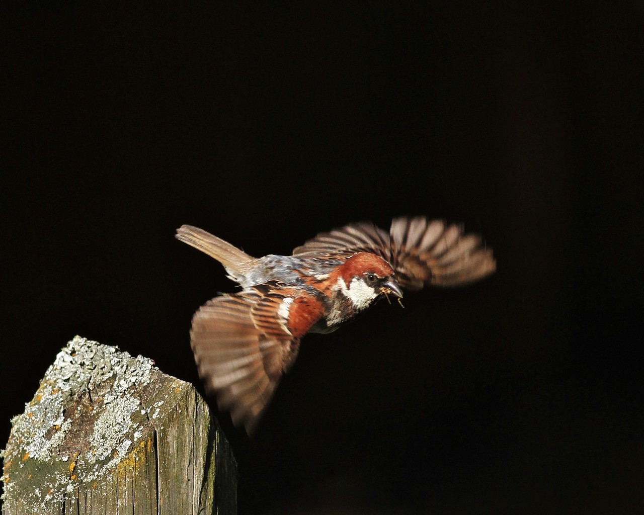Grazie Giulia e Federico. @Federico, non era notte ma mattino presto, il sole si era appena alzato e alcuni raggi di sole rischiaravano il passero appostato sul palo. Dietro il palo ad alcuni metri di distanza c'erano delle conifere che rendevano lo sfondo abbastanza buio. Io volevo cogliere l'attimo in cui il passero si sarebbe involato e quindi ho scattato dal balcone di casa con 1/2000 di secondo appena ho intuito che stava per involarsi. Lo sfondo nero non era voluto, ma è venuto così , mentre il soggetto ed il palo sono stati illuminati proprio come se avessi scattato di sera con un flash. Ciao