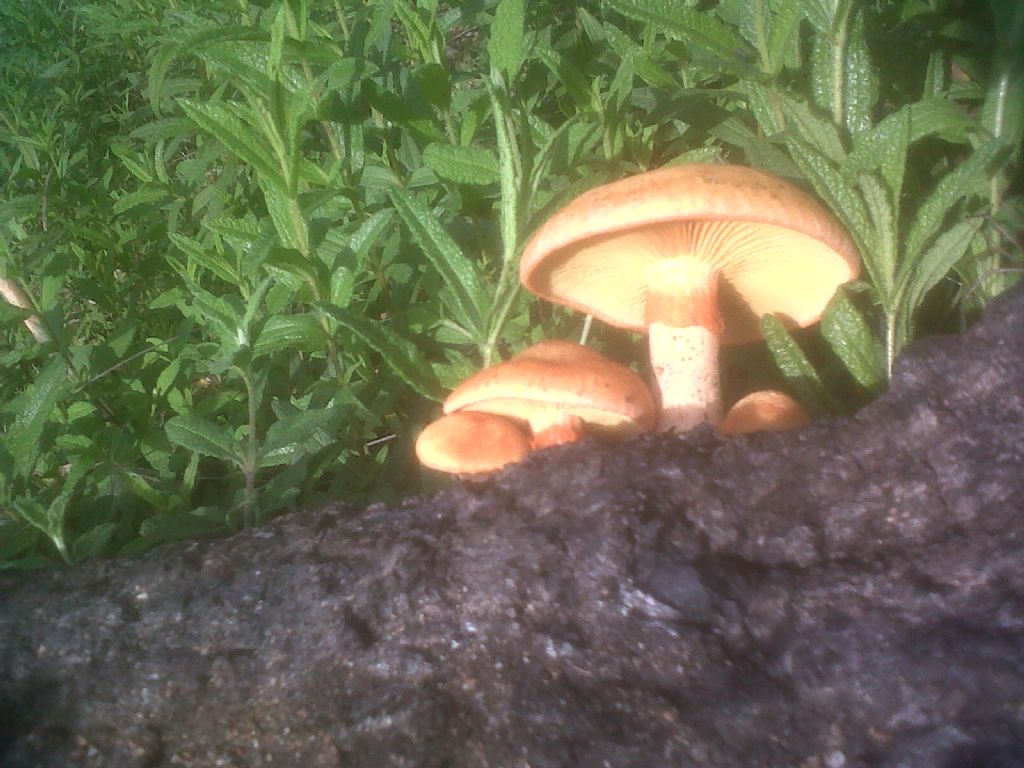 Cari amici, so che la foto non è il massimo ma avevo solo il telefonino. E' un fungo che ho trovato in un bosco di lecci e sughere che ha subito due anni fa un violento incendio. I funghi in questione crescono su spezzoni di tronco bruciato a terra. Si presentano di un arancione vivo, sodi e di media taglia, con lamelle ben evidenti con colore crema. Potete aiutarmi?