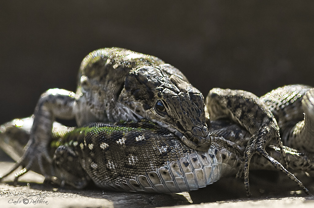 L'espressione della lucertola è magnetica , richiama visioni di combattimenti fra rettili primordiali in un pianeta agli albori. Foto affascinante!!
