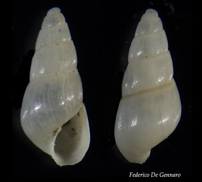 penso che in fin dei conti le linee di accrescimento siano ortocline; in più si intuisce anche una microscultura spirale e la protoconca nella penultima foto è chiaramente B, tutti caratteri che portano ad Odostomia angusta
