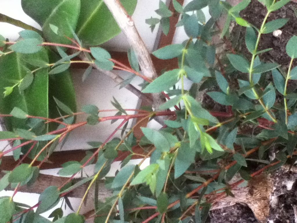 Ragazzi, oggi sono stato a casa di mia nonna, e facendo un giretto sul balcone ho notato questa piccola pianta, interrata nello stesso vaso con un Ficus. Lei purtroppo non si ricordava il nome, voi potreste dirmi che pianta è? Secondo me è un piccolo eucalipto, in quanto emana un profumo caratteristico e visivamente assomiglia molto a un eucalipto, se non fosse che le foglie sono molto più piccole. Che potrebbe essere? :)