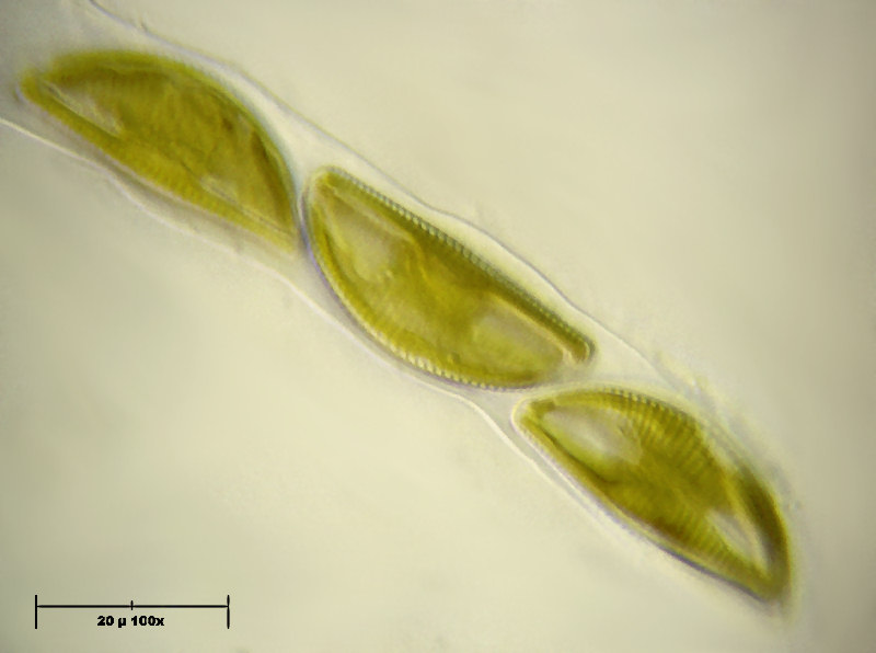 Encyonema caespitosum nel suo involucro tubolare gelatinoso