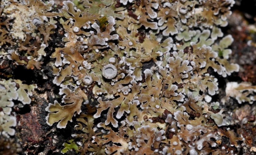 Grazie per questa belle distinzione Antonio. A sinistra vediamo i lobi corti ed embricati corrispondente a Physconia perisidiosa, mentre a destra i lobi ostentate e separate sono quelle di Physconia distorta. Tutti due hanno dei lunghi cigli neri marginali.