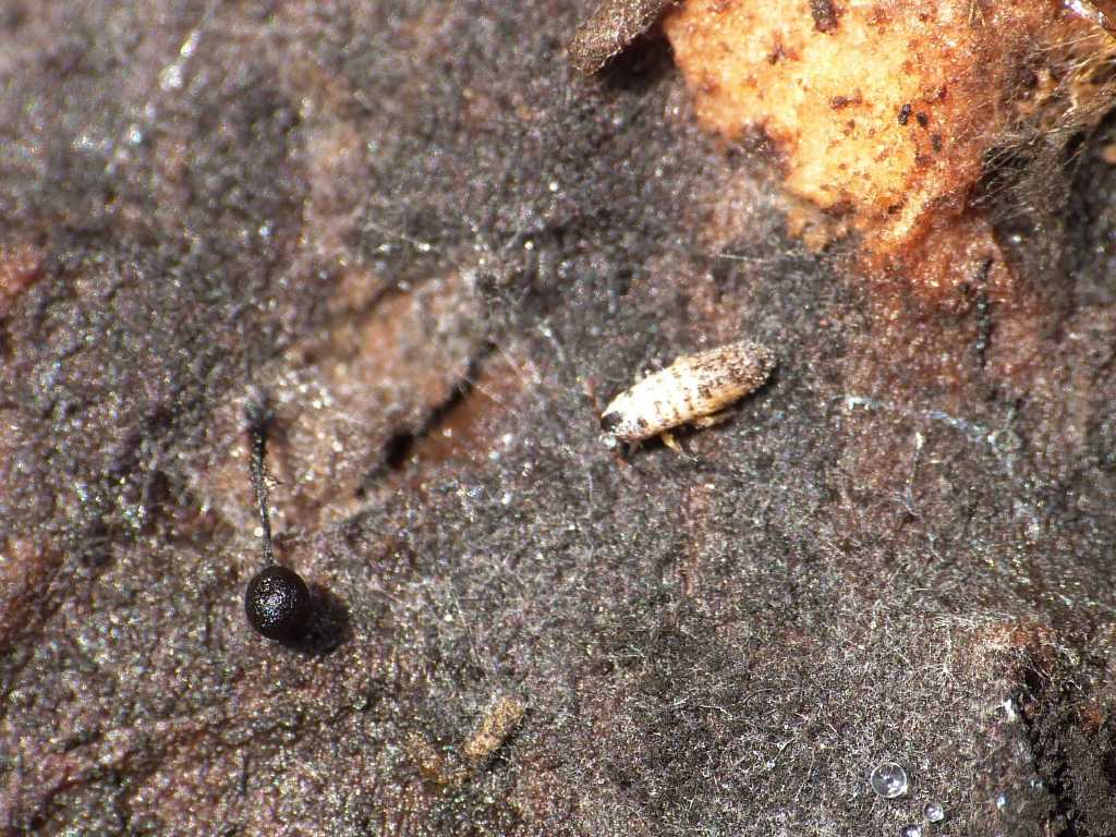 Fotografando un collembolo ho inquadrato anche una strana sferetta di circa 1,5mm di diametro.