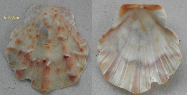 1- Flexopecten glaber 2,3- Mimachlamys varia 4,5- Aequipecten opercularis 6-7, Mimachlamys varia 8,9,10- Aequipecten opercularis |