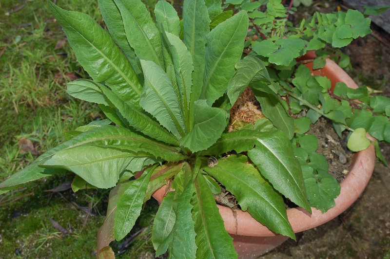 Essendo una pianta spontanea anche se in vaso mi permetto di deterrminarla,direi sicuramente nò cicoria, ma più una Lactuca sp.
