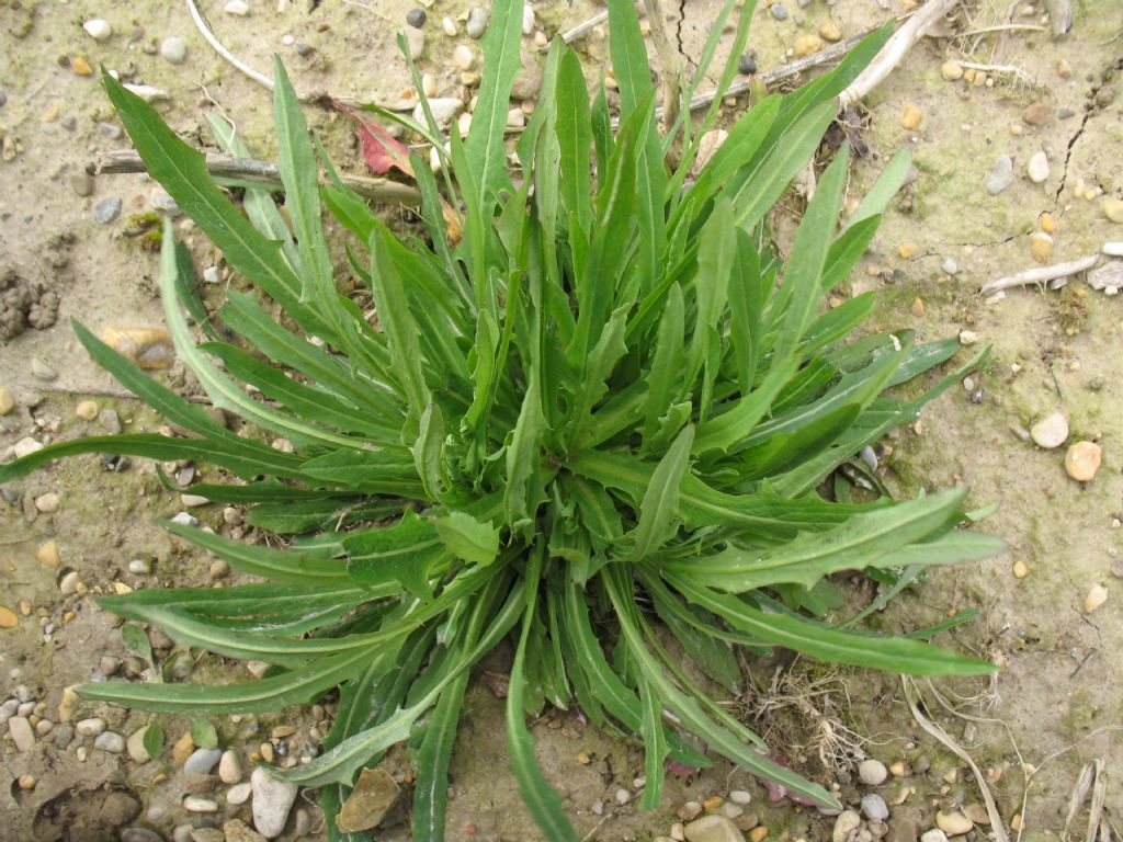 Si tratta di una piantina non ancora fiorita. Si arriva a risalire almeno al genere visto che ha una rosetta basale con foglie molo particolari, particolarmente lanceolate?