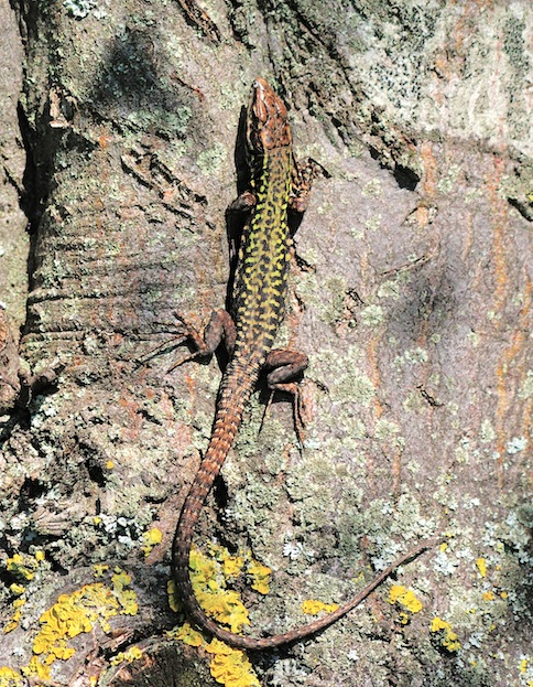 Ciao gilbonol,è un maschio di lucertola muraiola (Podarcis muralis).