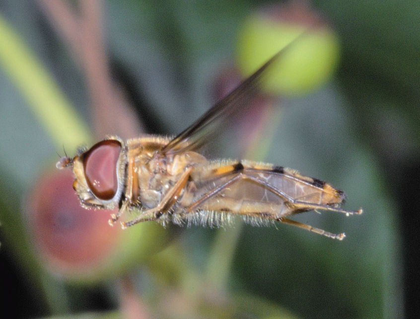 Nella discussione "Api per macromicro" avevo dato a Gianfranco questa risposta a proposito delle ripresa di insetti in volo. Tuttavia ieri si è verificata una circostanza per cui sono riuscito a fare quattro o cinque scatti in sequenza su un sirfide in volo, non preoccupandomi più di tanto dei tempi minimi di ricarica dei twim flash. Vero è che alcuni scatti sono riusciti sottoesposti proprio per la mancata ricarica dei due flash, ma per fortuna c'era anche l'SB 800 montato sulla fotocamera! Gli ipercritici vorranno avere pertanto un pò di indulgenza se troveranno in questi scatti un pò di "rumore", avendo avuto la necessità di aumentare la luminosità in sede di ritocco, ma d'altra parte non avevo proprio l'intenzione di fermarmi nel vedere inquadrato a fuoco quel bel sirfide che svolazzava e che sembrava mi dicesse: "Fanne ancora un'altra!". Ecco la sequenza: