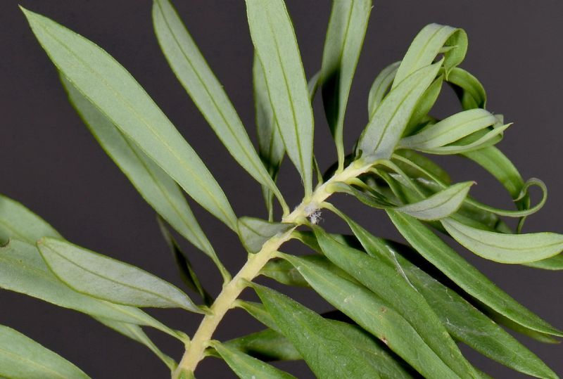 Trovati sulla pianta in cui sono i bruchini. Un esperto mi ha confermato che si tratta appunto di Daphne Gnidium. La pianta senza il bruco è il rinnovo che ha provocato il danno, raccolta in una zona diversa.Credo che a questo punto vi è qualche tipo di euforbia molto simile alla Dafne Gnidium, di cui ne ho qualche ramo rinsecchito,che farò riclassificare. Allego bruchi cresciuti, sempre sulla pianta iniziale. Immagine:
