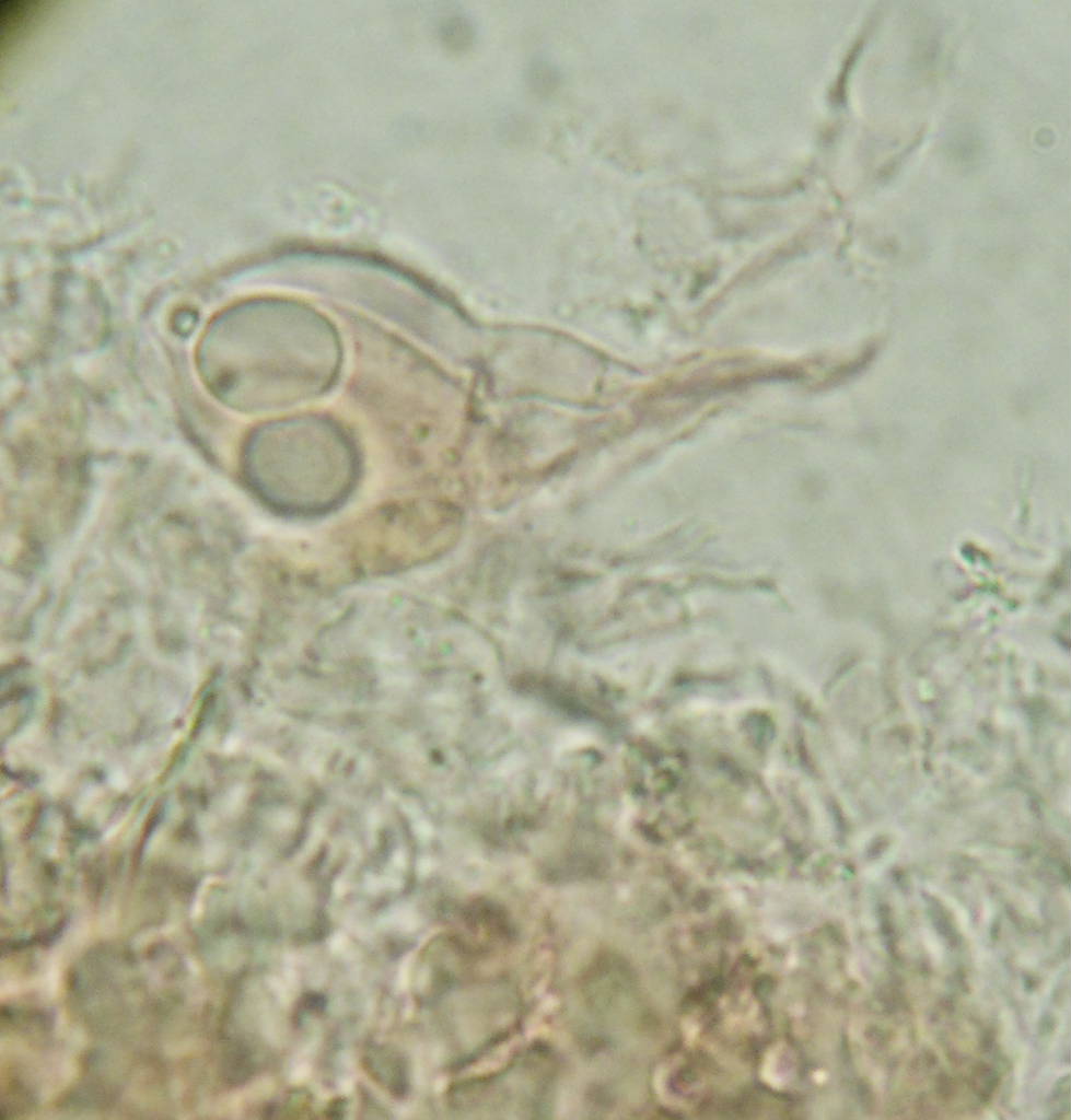Descrizione microscopica: spore grandi, cilindriche e/o allantoidi ma spesso irregolari, con misure medie pari a 14,7 x 5,2 µm, e talvolta con protuberanze apicali, GAF presenti, basidi settati (???) …, mi sembra anche di aver visto ife emergenti un po' irregolari e ramificate (ad albero)
