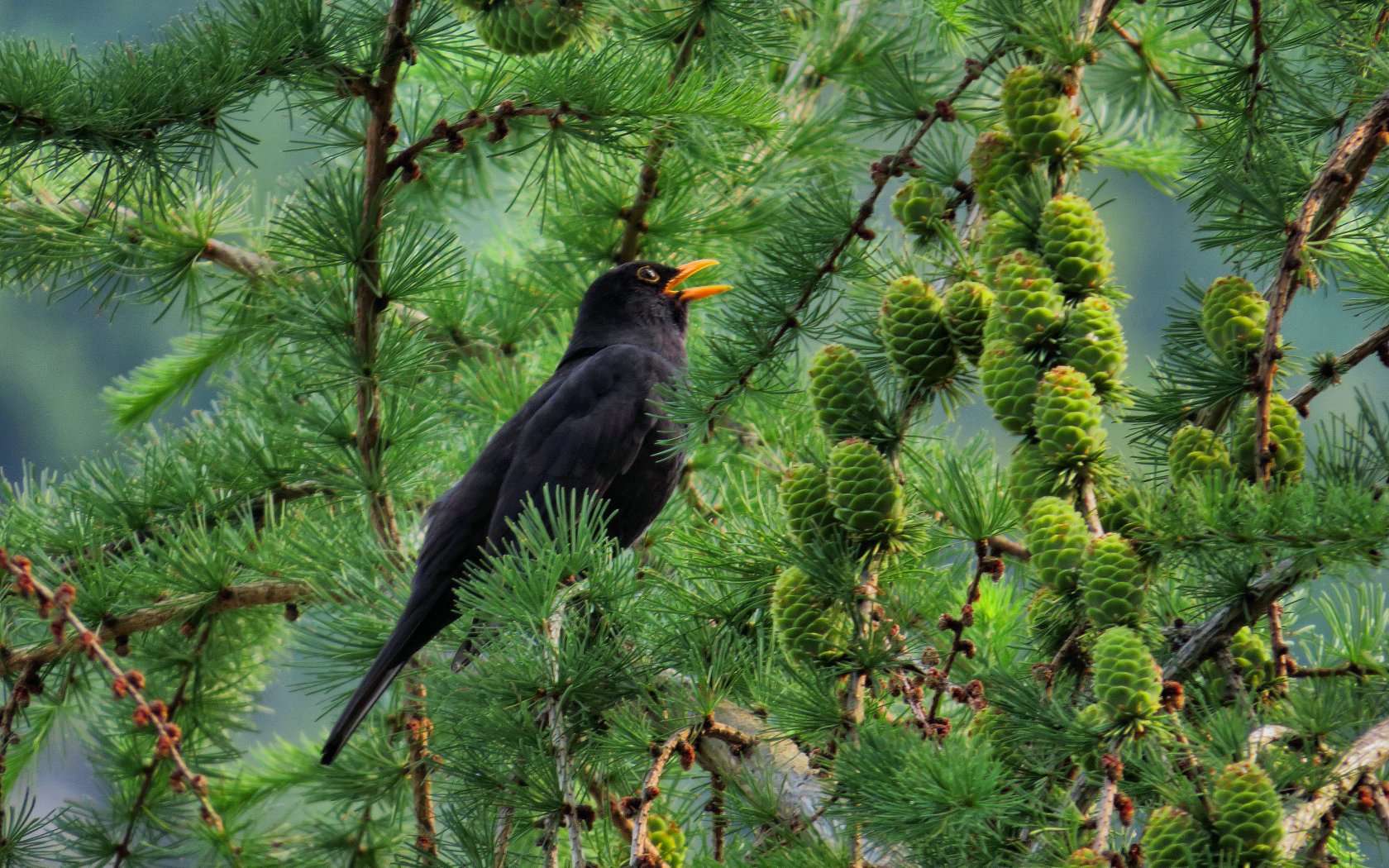 Nonostante fossi allo scoperto questo merlo molto confidente si è lasciato fotografare su una conifera non molto distante