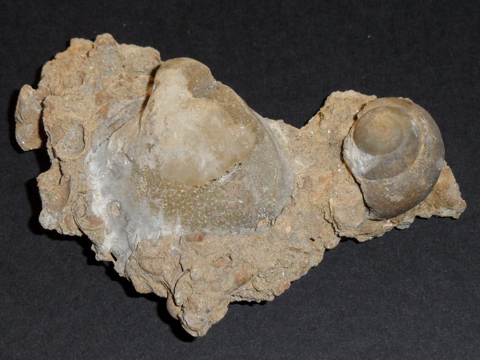 Quanto alle dimensioni, il lamellibranco è circa 35x35mm, mentre il gasteropode ha un diametro massimo di 22mm ed è alto circa 20mm.