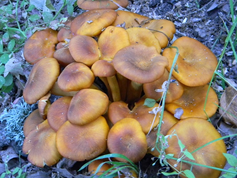 A mio parere dovrebbe essere Omphalotus oliarius esemplari molto giovani