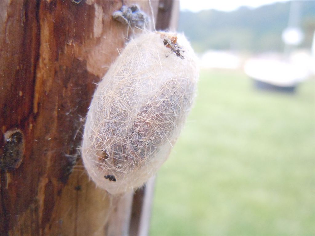 Agnano(NA), 8 giugno. Attaccato a una staccionata, in un punto poco tranquillo secondo me, ho notato questo bozzolo che mi sembra (o almeno spero) sia di lepidottero. All'interno si intravede una pupa, ma non so se ancora viva, non mi sembrava fissato al bozzolo. Si riesce a identificare?Grazie