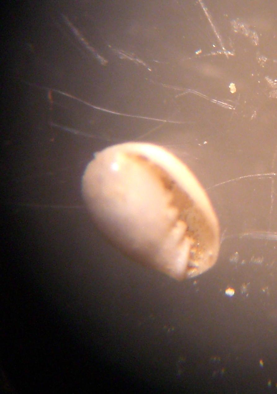 vorrei una mano per classificare questa micro conchiglia: lunghezza 1 mm, pescata vuota a 2 m di profondità in Croazia. Avevo pensato a una Granulina ma la forma non mi sembra quella, forse è un giovane del genere Gibberula o Volvarina?