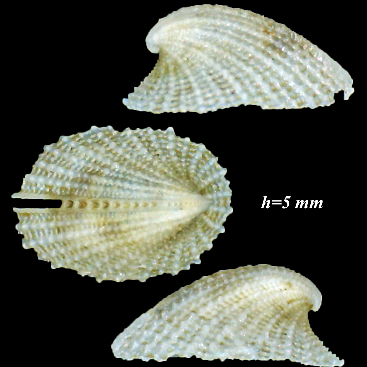 Questo Emarginula arriva anche da Terracina. Esso misura di 5 mm. Potrebbe essere E. tenera?.