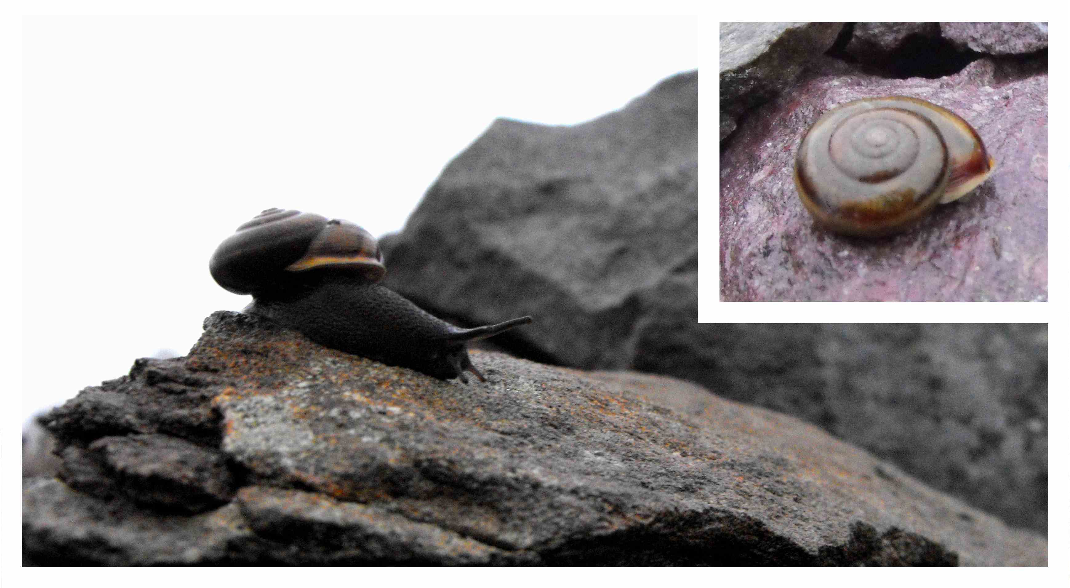 Subito mi sono accorto che la Helix zonata, di cui faceva riferimento Strobel, non era una zonata ma sembrava molto simile al Chilostoma adelozona rhaeticum che avevo trovato qualche giorno prima in val Fontana (SO), gli esemplari giovani di Chilostoma si somigliano tutti ma così piatto e con una fascia molto marcata non poteva essere Chilostoma zonatum . Deluso, soprattutto per non aver avuto la certezza di quello che sostenevo, mi sono diretto verso casa scendendo in Val Brembana e dopo qualche tornante, appena iniziata la zona boschiva, una paretina di roccia silicea ha attirato la mia attenzione e mi sono messo a cercare come ultima spiaggia. Alla base della paretina subito trovo alcuni frammenti e tre nicchi di una chiocciola che non somigliava per niente a Chilostoma zonatum ma a Chilostoma adelozona rhaeticum.