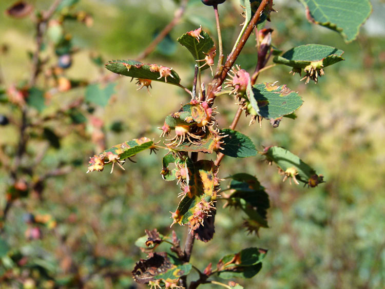 Vorrei chiedere il vostro parere su queste galle, bellissime e molto particolari, trovate ieri ad una quota di intorno a 1500 m nell'aquilano. Sono su Amelanchier ovalis (un Rosaceae). Qualche idea dell'artefice? Le foto sono di Bruno Petriccione.