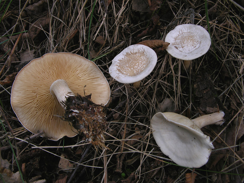 1° Clitocybe rivulosa 2° Clitocybe ditopa 3° Clitocybe pithyophila = cerussata 4° Pseudoclitocybe cyathiformis 5° Clitocybe clavipes