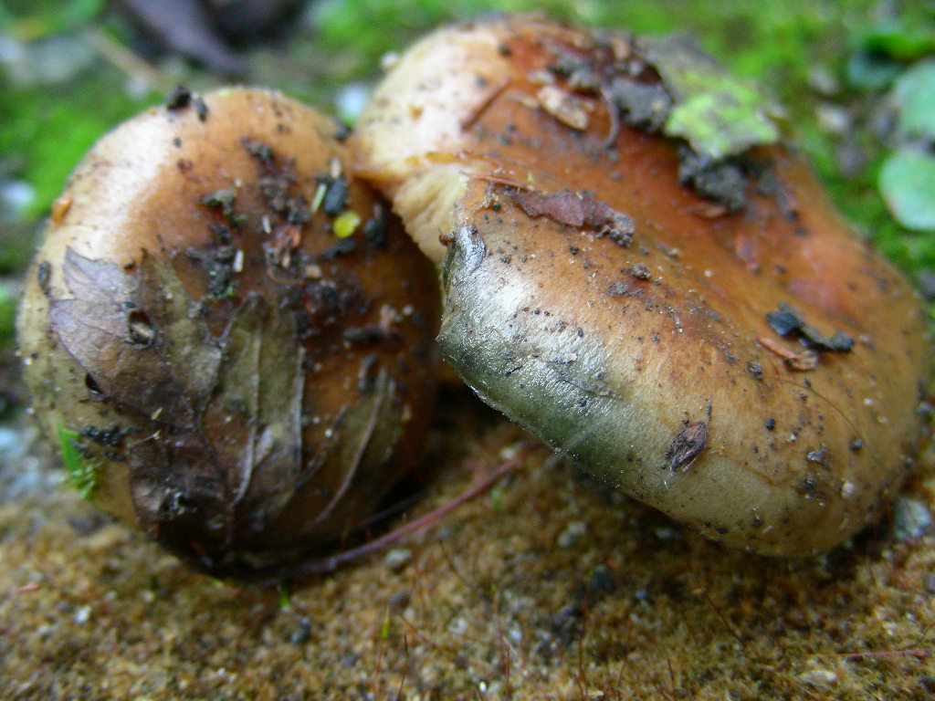 ciao Sirente, anche alcuni Lactarius della Sezione dapetes inverdiscono nel cappello! semisanguifluus o sanguifluus var. violaceus, quieticolor, sanguifluus, ecc, Ennio. |