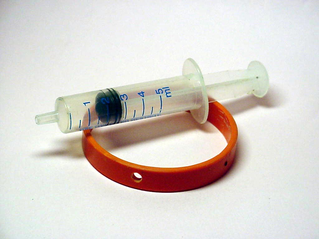 La ricerca riguardava una siringa: prima ne ho trovato una normale da 5 ml. No, troppo piccola. Finalmente quella giusta: un siringone da 50 ml, con rubinetto, rubato a quell'antipatico del mio dirimpettaio. E come ci è rimasto male quando il clistere gli si è interrotto sul più bello !