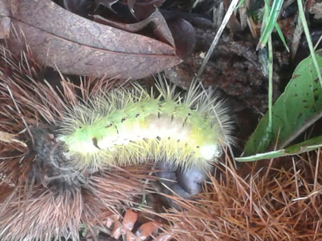 Un'amica ha fotografato con il cellulare questo bruco in un castagneto a boccheggiano (GR) a circa 400 metri di quota. La foto è pessima, tra l'altro si vede male un evidente cornetto marrone. Lunghezza circa 5 cm. Cosa è. Io non ci ho capito niente. Grazie