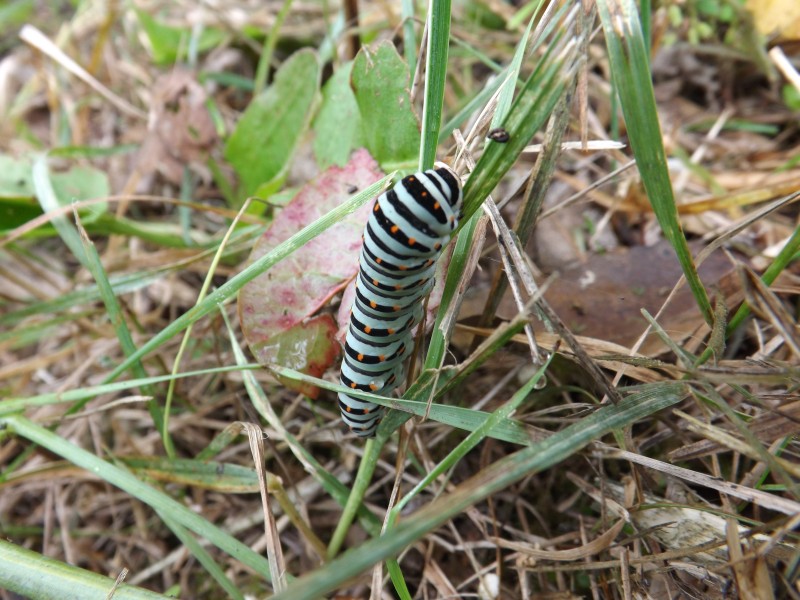Comunque senza dubbio c'erano ombrellifere da quelle parti? Il fatto che fosse su uno stelo di graminacea potrebbe voler dire che era a spasso per cercarsi un luogo per impuparsi, dal momento che mi pare matura..