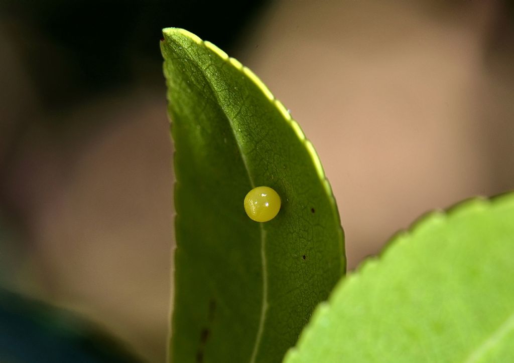 2° Una ventina di giorni fa, un'altra deposizione ed anche in questo caso, non documentato, uno sulla parte inferiore. La particolarità è che anche il bruco si è sistemato nella stessa posizione. Ho tentato inutilmente di inviare la foto del bruco nel suo giaciglio. E' come la precedente ma non la carica. |