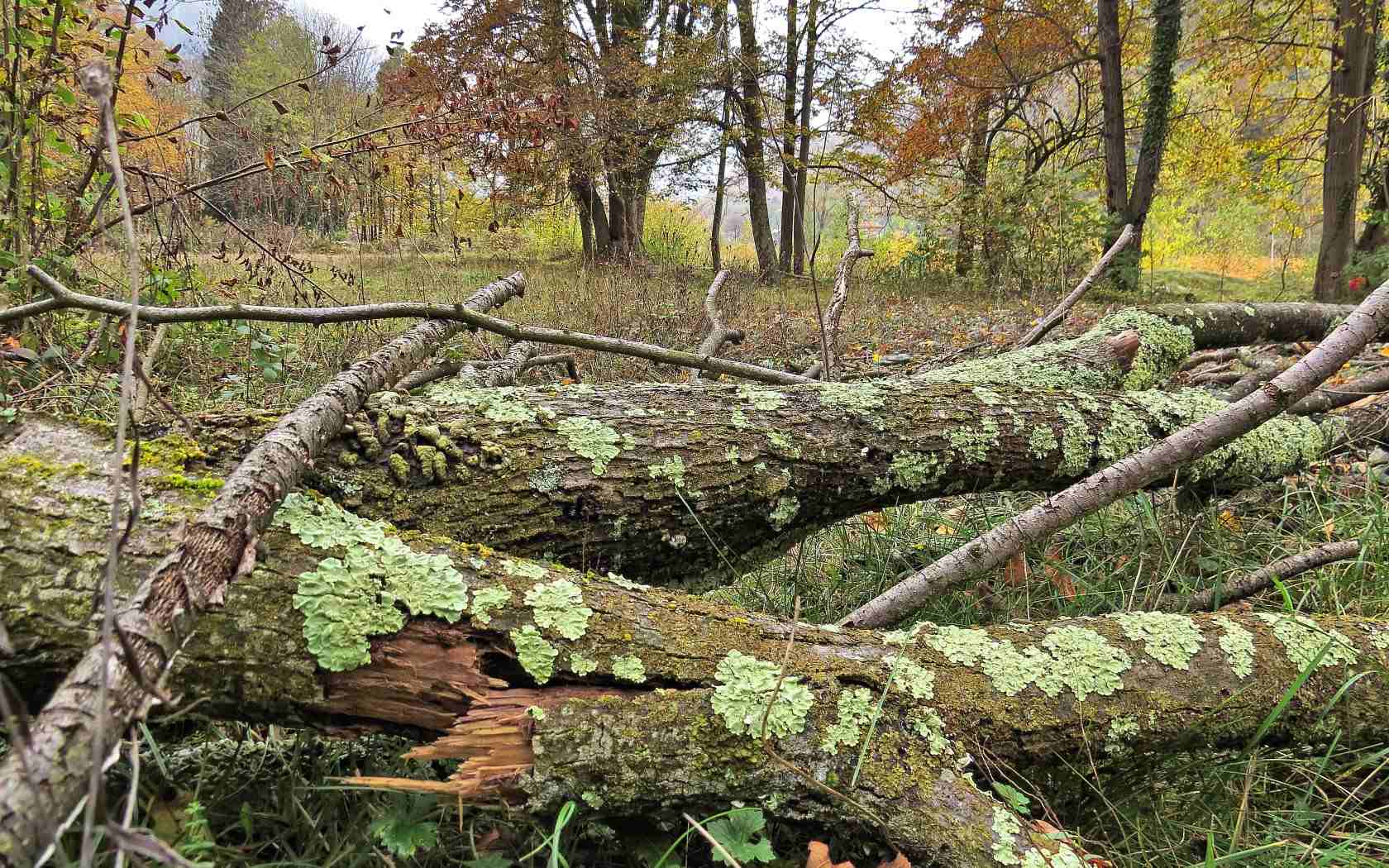 Oggi uscita sulle colline cusiane, lungo il fondovalle un albero abbattuto colora le rive di un fiume. Mentre sui versanti coperti di faggete alcuni funghi indicano la stagione oramai avanzata: