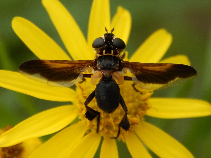 E' uguale ad una mia foto, che è stata classificata come Tachinidae-Trichopoda pennipes, forma scura. Ma aspettiamo comunque il parere di un esperto,così magari correggo anche la mia...