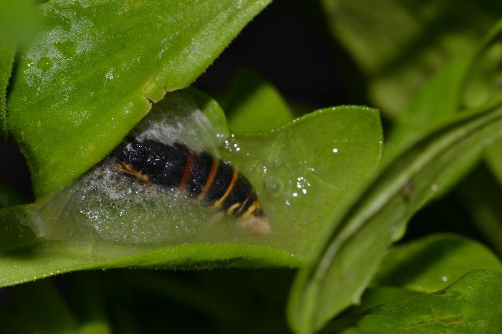 Chiedo scusa ma non sapendo di che cosa si tratta l'ho inserito in questo settore con la speranza di averci "preso". Il soggetto è all'interno di un "nido sericeo" racchiuso tra due foglie di cui la superiore è leggermente ripiegata ed è intriso d'acqua poiché poco prima aveva piovuto. Dalle immagini si risale al nome?