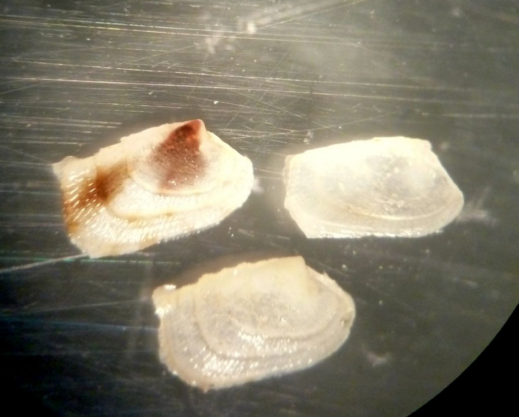 Salve a tutti, queste valve provengono dalla Croazia, trovate a 1 m di profondità. Misurano circa 3 mm x 1,3 mm. Potrebbero essere giovani di Irus irus?