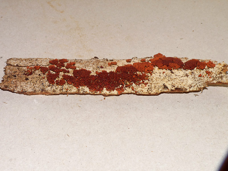 il 19 ottobre di quest'anno a qualche centinaio di metri di distanza e su un tronco probabilmente di Conifera in decomposizione sul terreno c'era quest'altra: